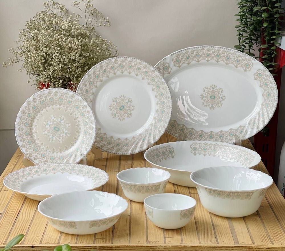 سرویس 6 نفره 26 پارچه آرکوپال پارس اپال کد 148 طرح آنیتا. در حال حاضر بدون شک آنیتا پر فروش ترین کار پارس اپال است، این طرح جدید سال ۱۴۰۳ وارد بازار شد و به صورت ۲۸ پارچه و فله عرضه شد. باید گفت بعد از مدتی عرضه سرویس ۲۸ پارچه متوقف شد و این طرح فقط به صورت فله عرضه شد، درحال حاضر مجموعه صالحی برای جوابگو بودن مشتریان خود از این طرح سرویس ۲۶ پارچه در کارتن مناسب(کارتنی غیر پارس اپال) درست میکند. در صورت تمایل میتوانید از طریق ادمین سایت حتی اقلام دیگر هم به صورت فله سفارش دهید. این سری از پارس اپال قابلیت استفاده در مایکروفر و ماشین ظرفشویی را دارا میباشد. در مقابل ضربه و شوک دوام بالایی دارد، همچنین ضد خط و خش بوده میباشد. *توجه به دلیل توقف تولید سرویس ۱۴۸ این محصول کارتن فابریک ندارد و سرویس توسط مجموعه صالحی پَک میشود*