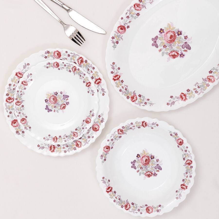 بشقاب تخت ۲۵۰ (پلوخوری)، بشقاب گود ۲۲۵( خورش خوری)، پیشدستی ۱۹۵، کاسه آبگوشت ۷۷۰، کاسه ماست ۷۲۰، کاسه ترشی ۷۱۰، کاسه سالاد ۲۴۰، کاسه سوپ ۷۸۰، قندان ۸۱۰، سس خوری ۸۲۰، دیس بیضی ۱۰۱۰، دیس تخت گرد ۱۰۲۰، دیس گود ۱۰۳۰، دیس بیضی ۱۰۵۰ کباب، فنجان ۲۷۰، لیوان
